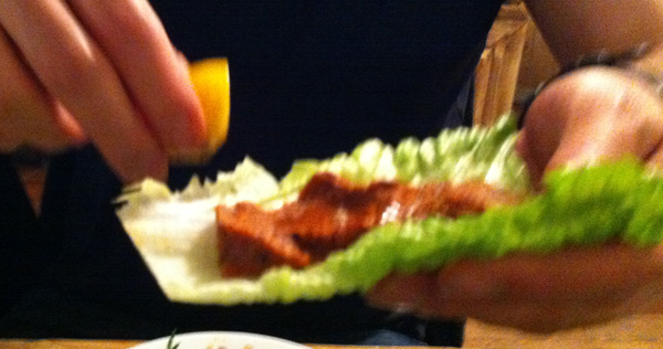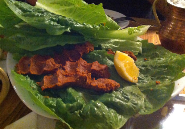 My favorite dish was Chee Kufta, which is spiced raw meat that is rolled into a lettuce leaf with a little fresh lemon. Very tasty and a bit spicy. The Chee Kufta at this restaurant was better then a dish I had later, so the taste does seem to vary.
