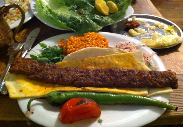 My main dish was an Adana Kebab. I had one of these at my hotel my first night there, and I didn’t care for it much. I decided to try it again as I was truly in a locals place, and again found it not to my liking. I am not really sure what they spice this kebab with, but whenever I come across this flavor is a dish I find it more and more distasteful, rather than something I get more accustom to.