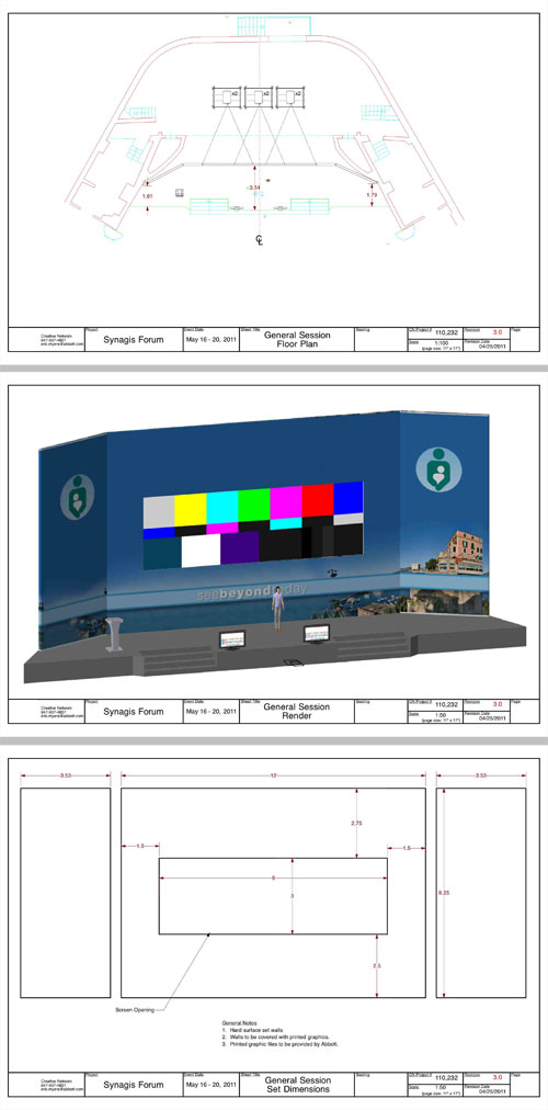 These events are always a challenge, and I am most nervous the night before we begin set up as I am never truly sure that things will fit and line up properly until it’s all built and done. Fortunately this set went in just perfectly, and as you can see from the render on the last page of the plans above, came together pretty much as planned.