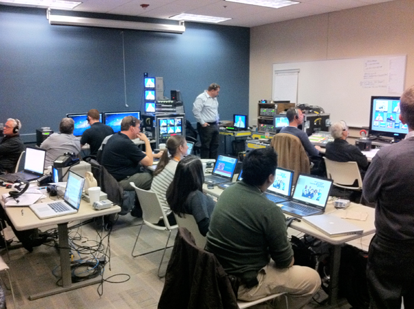 While working on this event I was also tasked with designing and TD’ing two more large events. The first is our annual All Employee Meeting which our CEO delivers. The design aspect of this event is relatively simple, as we do the same set up each year. What makes this event difficult is the coordination of the nearly 50 locations around the world that view the broadcast in real time via a fiber network or through a satellite link. This past year we added three new international locations, including Rio de Janeiro and Basel, Switzerland.