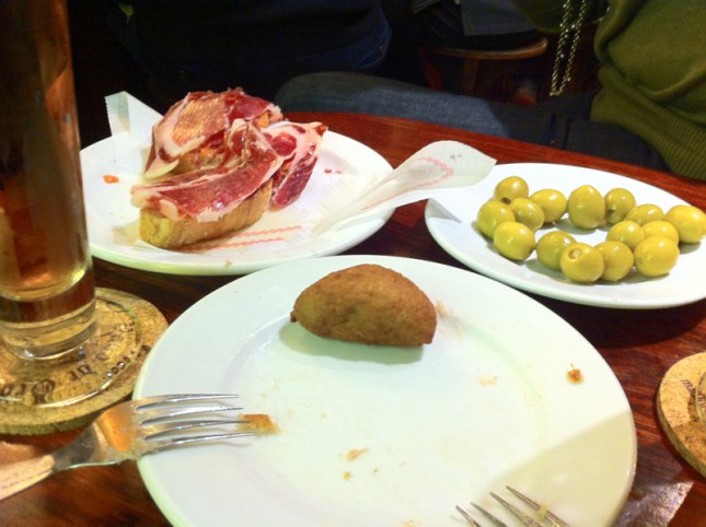 Other places in Spain serve these, but about half the time it’s french fries with the spicy sauce, other times it’s a form of spicy ketchup. These are the best spicy potatoes I’ve had in Spain – they are wonderful. But we didn’t just have potatoes, we also had some other traditional tapas before leaving.