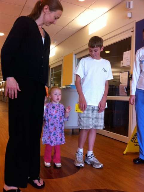 She just wants to be picked up. After a little tantrum and finally running to mom the nurses decided that was acceptable.
