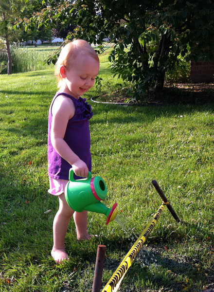 Helping me water some new grass.