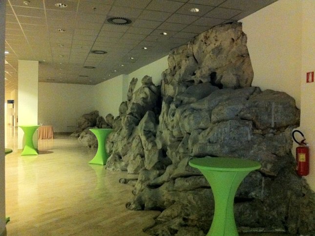 The hotel was built into the side of the hill, and in the lower levels they left some of the natural rock exposed in the building.